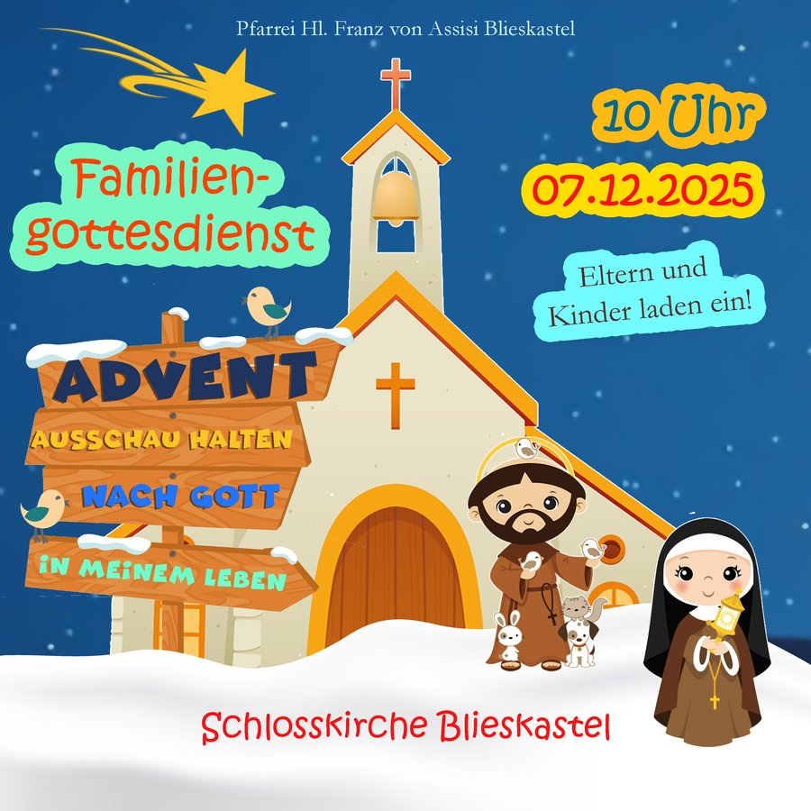 Herzliche Einladung zum Familiengottesdienst, am 7. Dezember, um 10 Uhr, in der Schlosskirche Blieskastel.
