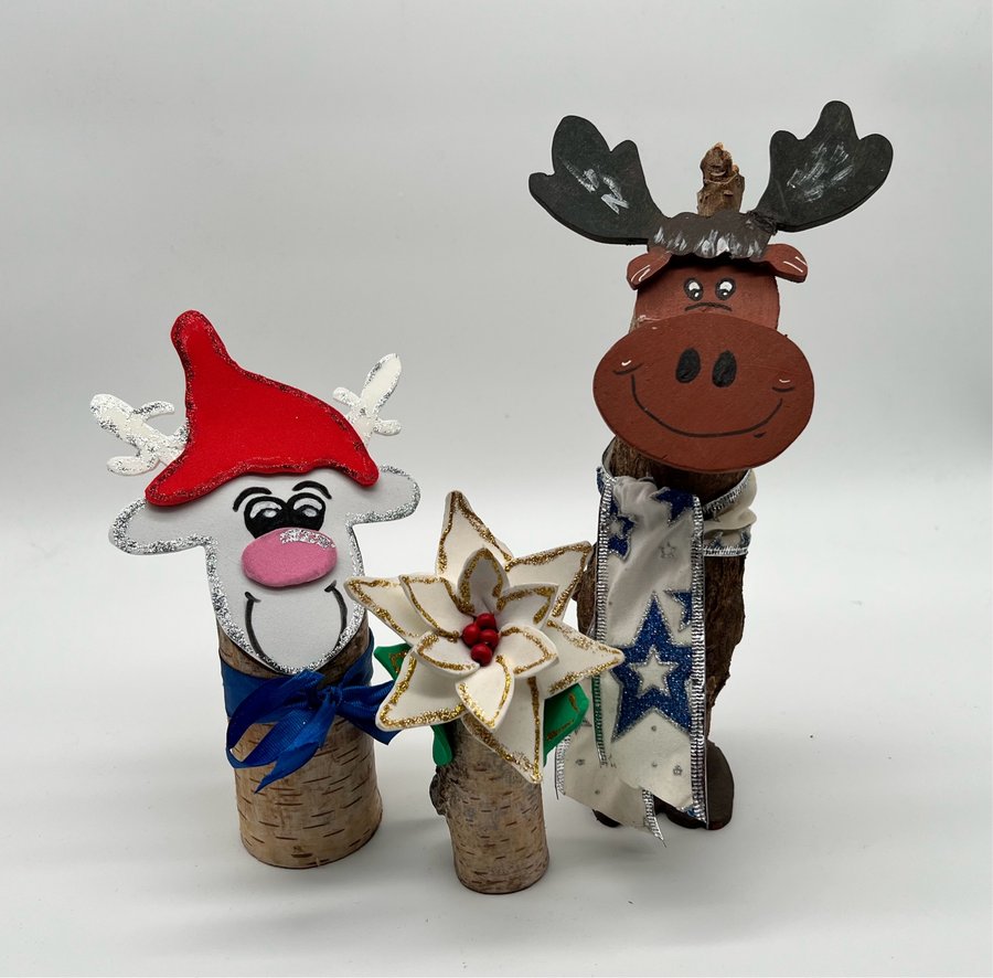 Aus schlichten Baumstämmchen entstehen mit Farbe, Moosgummi und Filz lustige Figuren. Echte Hingucker für Tisch und Fensterbank.