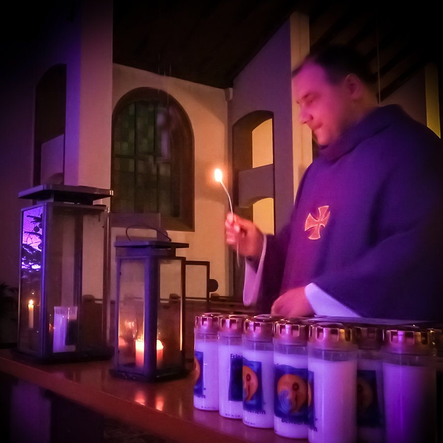 In diesem Jahr nahm P. Hieronim das Licht am Vorabend zum 4. Advent in der Heiligen Messe in Mariä Himmelfahrt entgegen und Vertreterinnen und Vertreter aus allen Gemeinden trugen die Flamme weiter in unsere Kirchen. Ein ganz herzliches Vergelt’s Gott dafür.