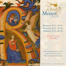 Wir laden auch in diesem Jahr ganz herzlich zu unseren Roratemessen ein, am 3., 10. und 17. Dezember (die drei Mittwoche im Advent) jeweils um 18 Uhr in der Kirche St. Josef Ballweiler.