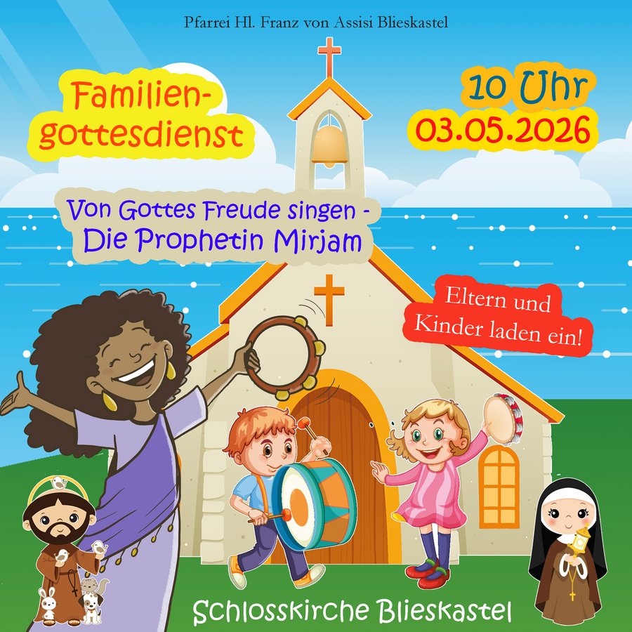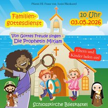 Herzliche Einladung zum Familiengottesdienst in der Schlosskirche zu dem die Eltern und Kinder unserer Pfarrei einladen. Am 3. Mai, um 10 Uhr, dreht sich in der Heiligen Messe alles um das Thema »Von Gottes Freude singen«! Wir laden alle Familien ganz herzlich ein!