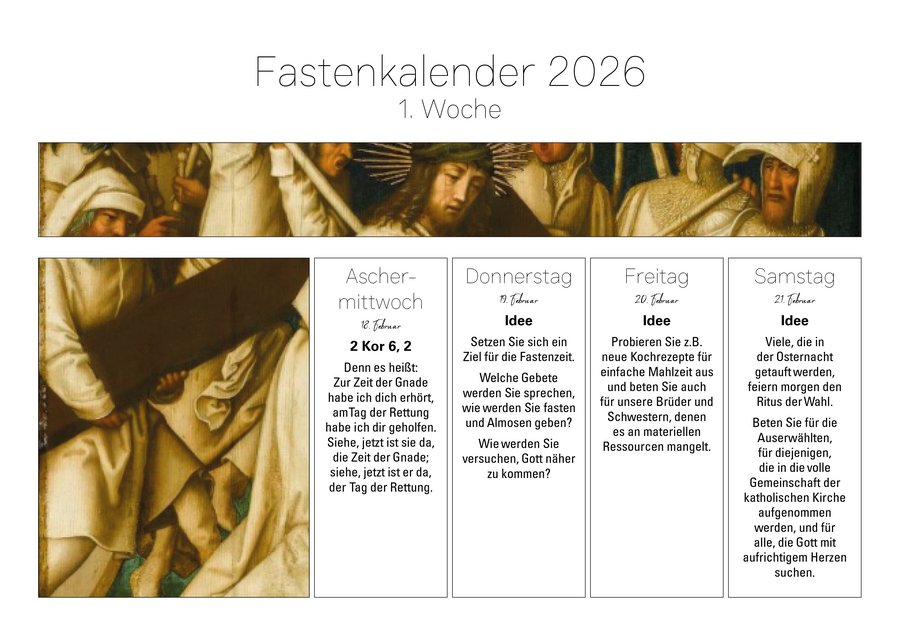 Für uns als Pfarrei Hl. Franz von Assisi ist dieses Heilige Jahr ein toller Anlass, uns mit der franziskanischen Spiritualität weiter vertraut zu machen. Dazu werfen wir in der Fastenzeit einen genaueren Blick auf die zweite große Heilige aus Assisi, auf die Heilige Klara. Es ist überliefert, dass sie am 11. August 1253 mit den Worten: „Du, Herr, sei gepriesen, weil du mich erschaffen hast“, starb. Dieser Satz kann uns eine Hilfestellung sein, die Tage der Fastenzeit in einer Haltung der Dankbarkeit zu leben. Dankbar zu sein für das Geschenk des Lebens in dem Bewusstsein, dass es der ständigen Umkehr bedarf um Gott demütig als den Ursprung des eigenen Lebens und allen Lebens anzuerkennen.