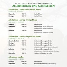 Der Besuch der Heiligen Messe natürlich, denn jedes Mal, wenn wir zur Messe gehen, gedenken wir in der Eucharistie auf besondere Weise der Heiligen. Außerdem halten wir Andacht auf dem Friedhof und versammeln uns an den Gräbern unserer Lieben, die wir zuvor besonders geschmückt haben. Die Gräber werden gesegnet.