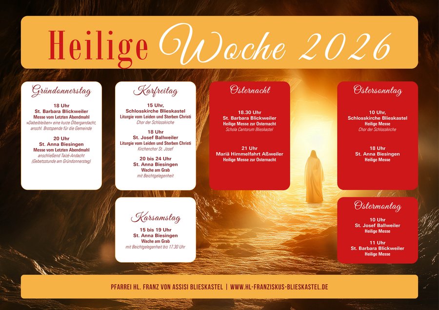 Die Gottesdienste in der Heiligen Woche und dem Triduum Paschale 2026
