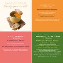 Wir, als katholische Kirchengemeinde, sind dieser Tradition sehr verbunden und so bieten wir auch in diesem Jahr an drei Fastensonntagen die Möglichkeit an, an unseren Fastenessen teilzunehmen: