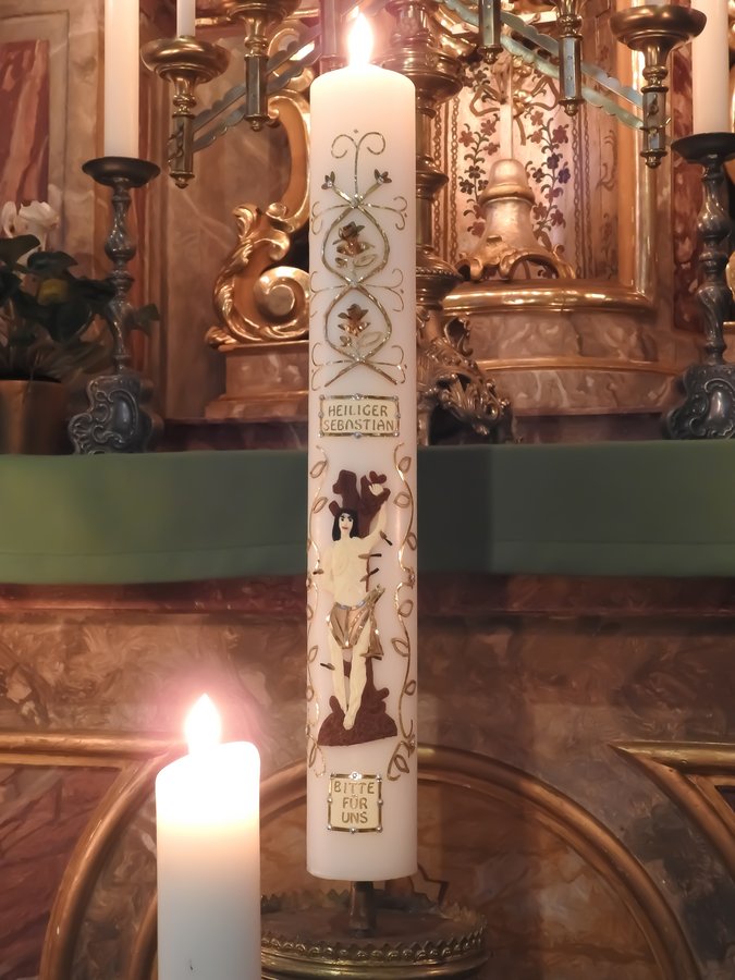 Wir bedanken uns auch ganz herzlich für die Kerzenspenden für den Sebastianaltar. Ein ganz besonderer Dank gilt Frau Andrea Weinmann für die Gestaltung der wunderschönen Sebastian Kerze.